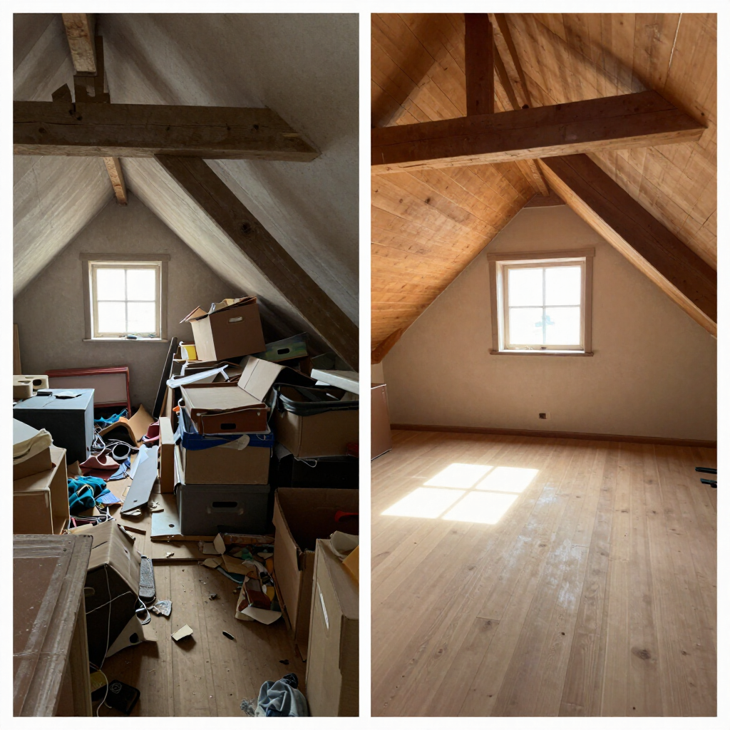 Een complete zolderontruiming waarbij we zorgvuldig waardevolle spullen hebben gescheiden van afval.
